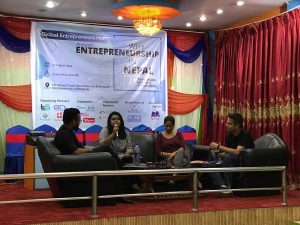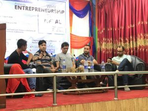 There were two sets of panel discussions. The early panelists Mr. Sixit Bhatta Founder of Tootle, Mr. Narottam Aryal President of King’s College, Mr. Asgar Ali and Mr. Amit Agrawal Founder of Khalt discussed the necessity of Entrepreneurship for a developing nation and roll of youths on it. Mr. Bhatta emphasized that the game of Entrepreneurship should not only be limited to solve a problem but also change people’s behavior in the course of time. He emphasized on you come with some creativity and change policy will or has to follow. He beautifully supported the above statement with an analogy that the first car was built then there was a concept of the driver’s license.